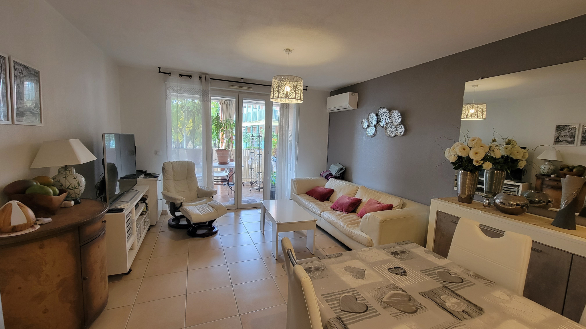 Dans une résidence sécurisée récente avec ascenseur en garantie décennale, au calme et proche des commerces, appartement en rez-de-chaussée composé d'un séjour très lumineux climatisé, avec cuisine américaine, belle terrasse de 10 m², une salle d'eau spacieuse avec toilette, une chambre. Un eplace de parking extérieur avec la possibilité de garer deux voitures